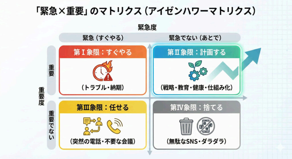 アイゼンハワーマトリクスは、単なる時間管理ツールではなく、意思決定の質を高める武器です。